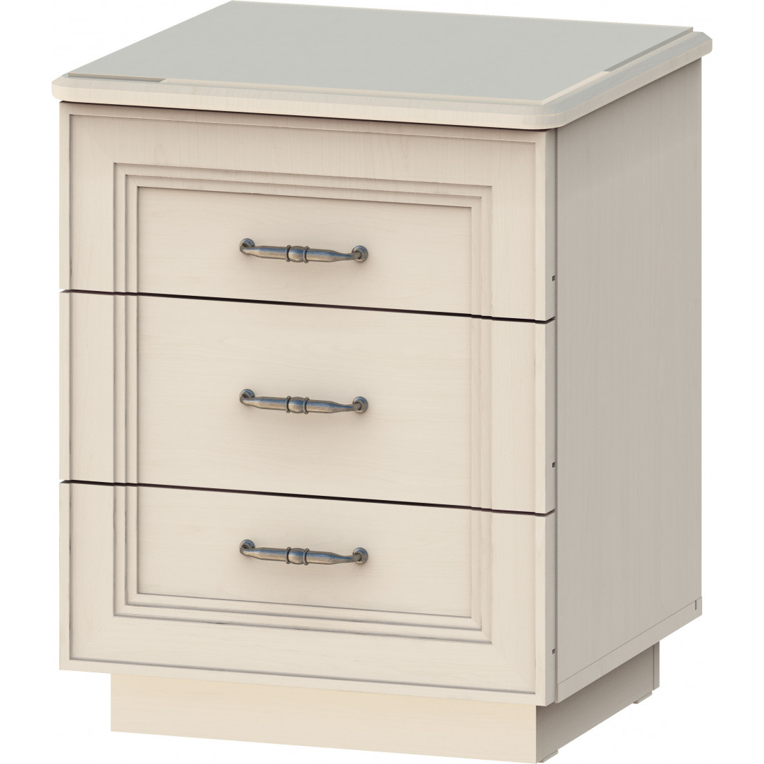 Ручки – металлические цвета состаренного серебра Столешница МДФ в эмали, сверху крашеное стекло